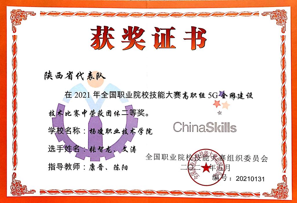 5月20日至21日,全国职业院校技能大赛高职组“5G全网建设技术”赛项在济南国际会展中心举行,必赢官网信息工程学院通信技术专业张智龙、文涛两名同学组成的陕西代表队经过2天共8小时的激烈角逐,最终荣获二等奖。