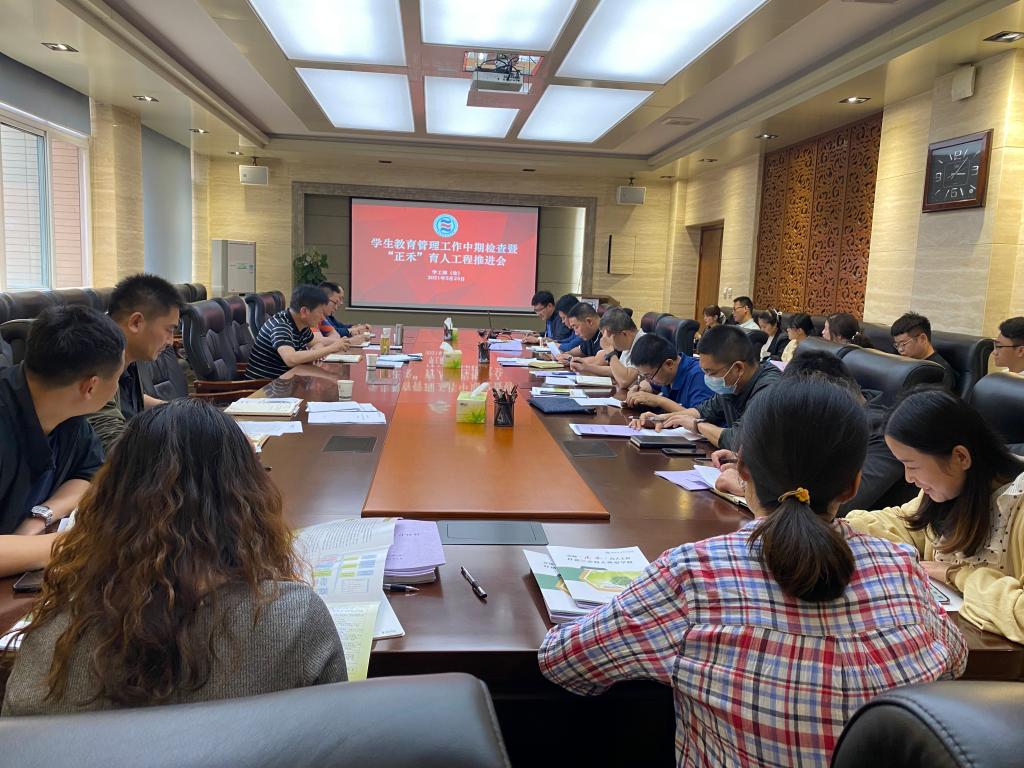 为加强学生的教育管理,落实“思想建设年、管理细化年、制度落实年”建设,5月25日,学校召开学生教育管理工作中期检查暨“正禾”育人工程推进会。会议由学工部部长陈军峰主持,党委学工部、团委处科级干部,各学院学工办主任、辅导员代表等40余人参加了会议。