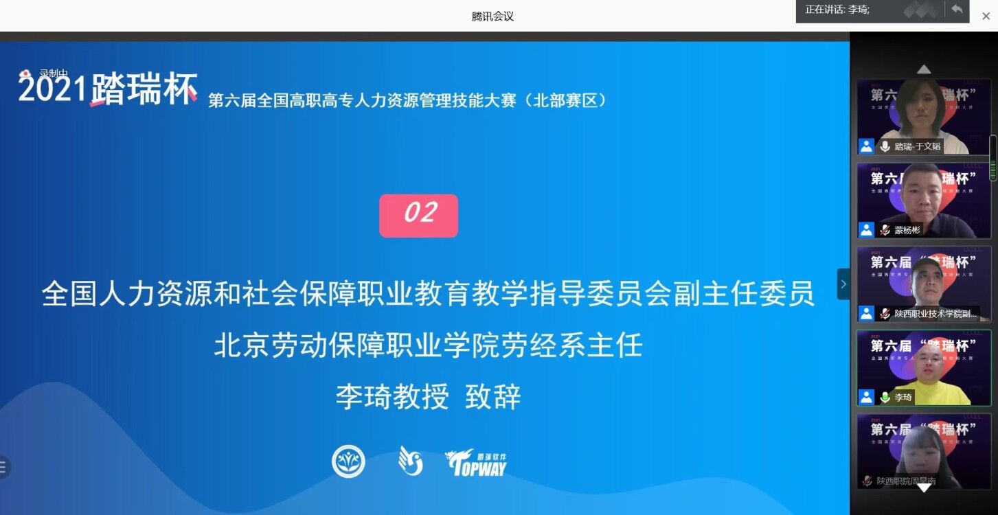本次大赛由全国人力资源和社会保障职业教育教学指导委员会主办、上海踏瑞计算机软件有限公司协办,采用线上形式比赛,北部赛区14个省、自治区、直辖市的64所院校65支队伍参加了比赛。