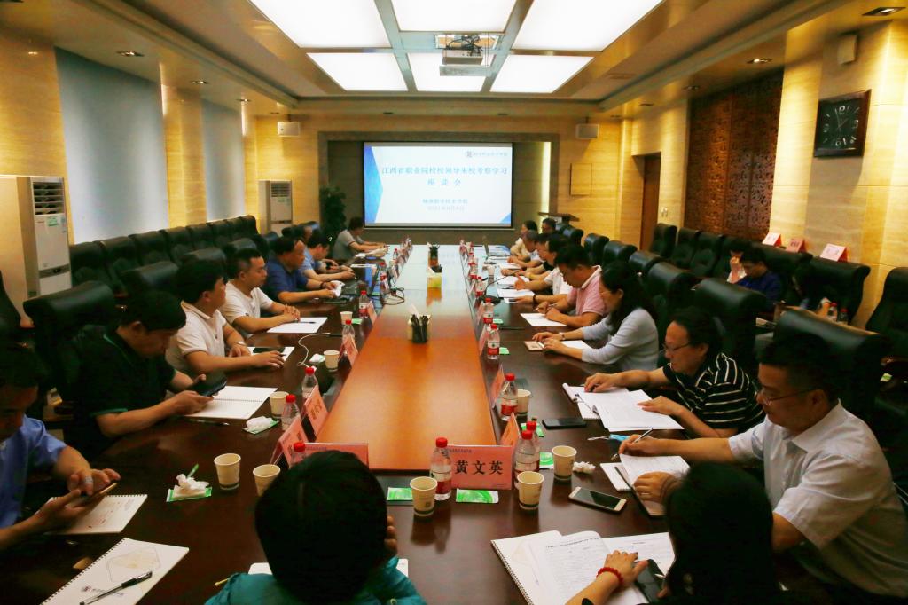 6月8日,江西省职业院校校领导一行23人来必赢官网考察学习。必赢官网校长王周锁接待了考察团一行。