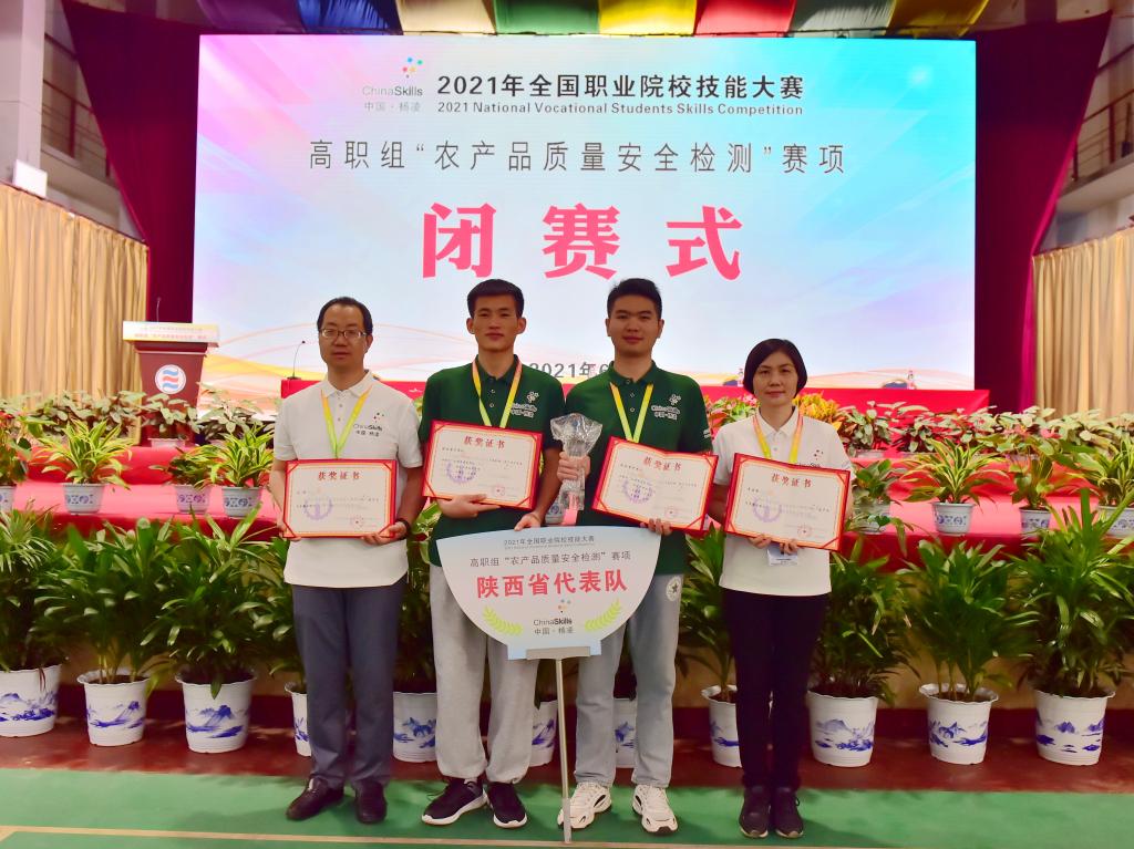 经过两天紧张激烈的比赛,6月18日上午,2021年全国职业院校技能大赛(高职组)“农产品质量安全检测”赛项闭赛式在杨凌职业技术学院举行。由必赢官网王博文、王胜武2名学生组成的陕西省代表队,在本次赛项中取得了第一名的好成绩。