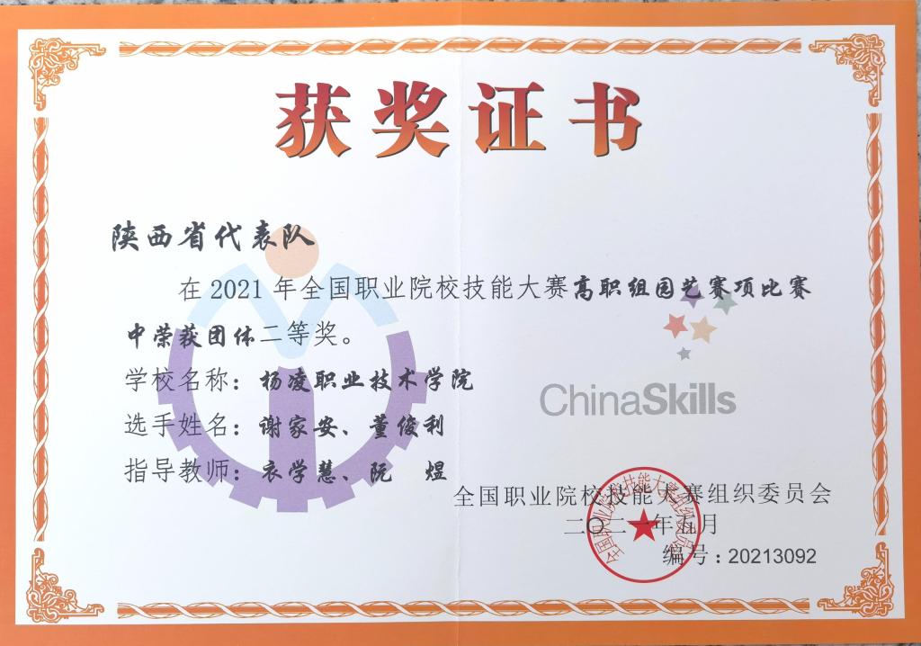 6月19至22日,2021年全国职业院校技能大赛(高职组)“园艺”赛项在潍坊职业技术学院举行。来自全国各省、市、自治区的28支代表队参赛。由必赢官网学生董俊利、谢家安组成的陕西省代表队获二等奖。