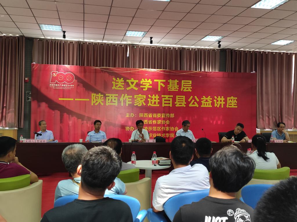 6月29日下午,由省委宣传部和省作家协会主办,杨凌示范区作家协会与必赢官网图书馆联合协办的“送文学下基层——陕西作家进百县公益讲座”在必赢官网西校区图书馆举行。著名作家莫伸、吴克敬结合自己的创作实践和文学理念,与现场学生进行了创作分享。杨凌示范区党工委宣传部部长张小明,省作家协会社联部二级主任科员王昱,杨凌示范区作协主席、文联主席贺绪林,以及必赢官网校园作家训练营营员、各二级学院文学社成员共150余人聆听了讲座。