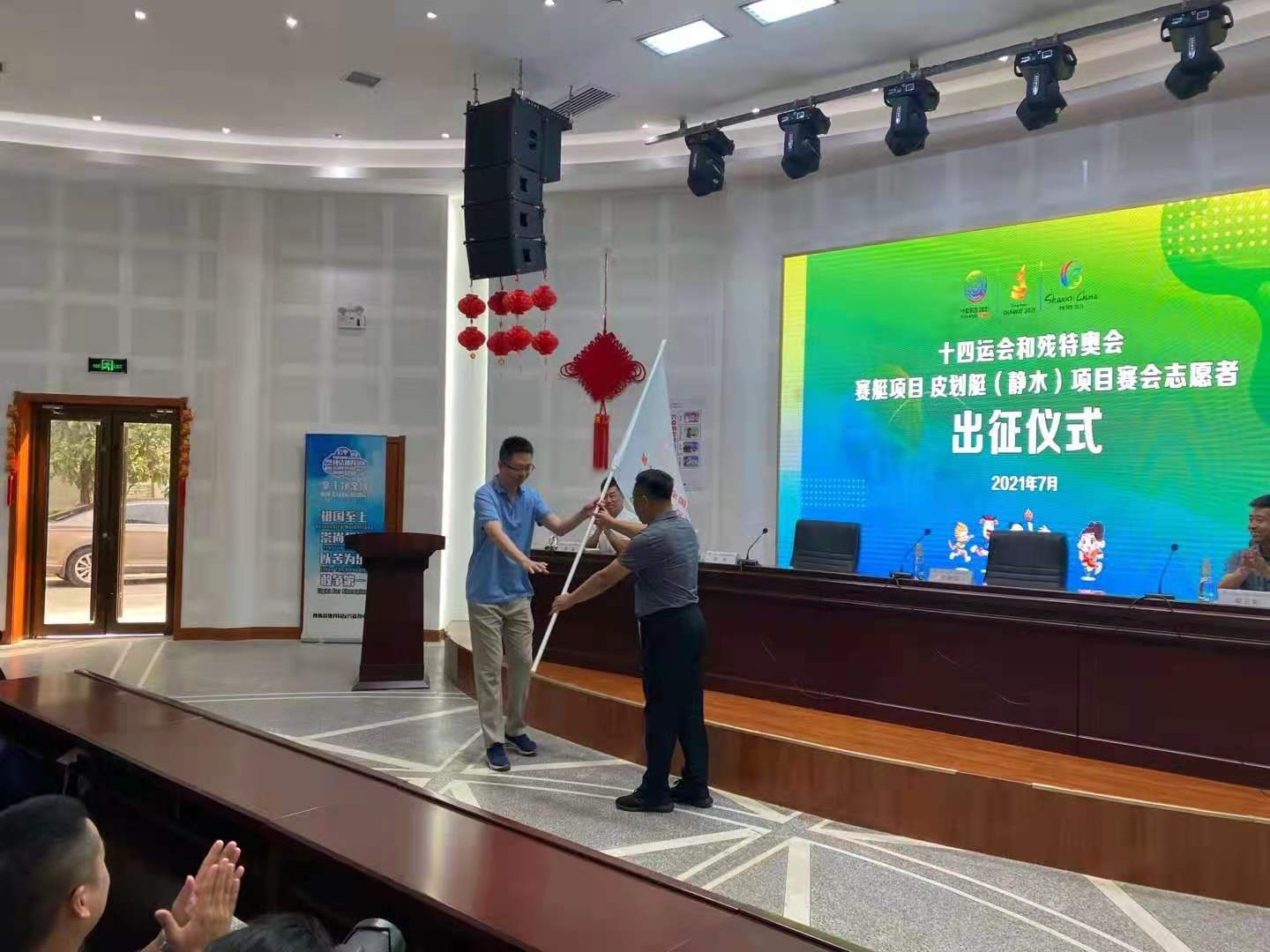 7月4日,十四运会和残特奥会赛艇、皮划艇(静水)项目志愿者出征仪式在省水上运动管理中心举行。校团委书记陈吼代表必赢官网志愿者服务队接旗。