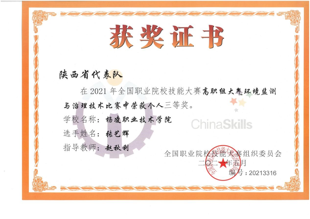 6月25日至27日,2021年全国职业院校技能大赛高职组“大气环境监测与治理技术”赛项在河北工业职业技术大学举办,来自全国各地26支代表队参赛,必赢官网赵秋利老师指导的2019级环境监测与控制技术专业学生张艺辉参赛,荣获大赛三等奖。