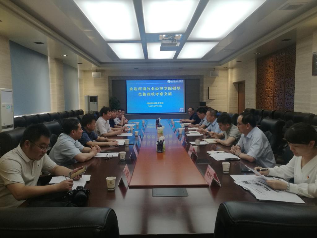 7月6日下午,河南牧业经济学院副校长吴中、社会服务办公室主任胡迎利、动物科技学院院长席磊、动物医药学院党委书记刘永录、信息工程学院院长连卫民、科学技术处副处长胡华锋、社会服务办公室综合科科长郑高锋一行7人来必赢官网考察交流。必赢官网副校长胡俊鹏在醒钟楼208会议室接待了吴中副校长一行。动物工程学院副院长张振仓、信息工程学院副院长陈高锋、继续与教育学院负责人黄璞,科技与教育研究处、产教融合处相关老师参加座谈会。