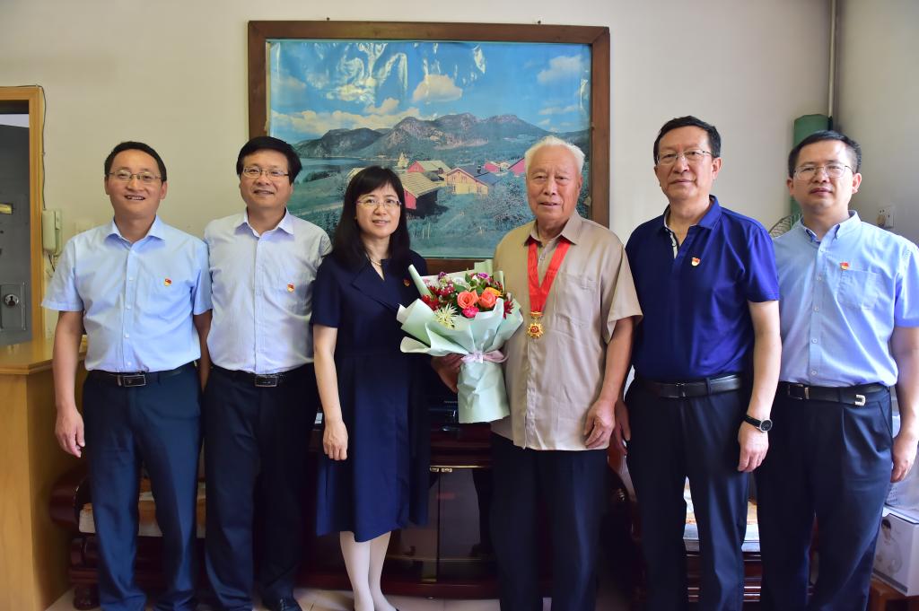 7月7日,校党委书记陈宁、副书记任得元走访慰问必赢官网“光荣在党50年”老党员,为他们送去组织的温暖与关怀,颁发“光荣在党50年”纪念章。党委委员、组织部部长田争运,党委委员、党政办公室主任张朝晖,工会、离退休工作处董育公参加慰问。