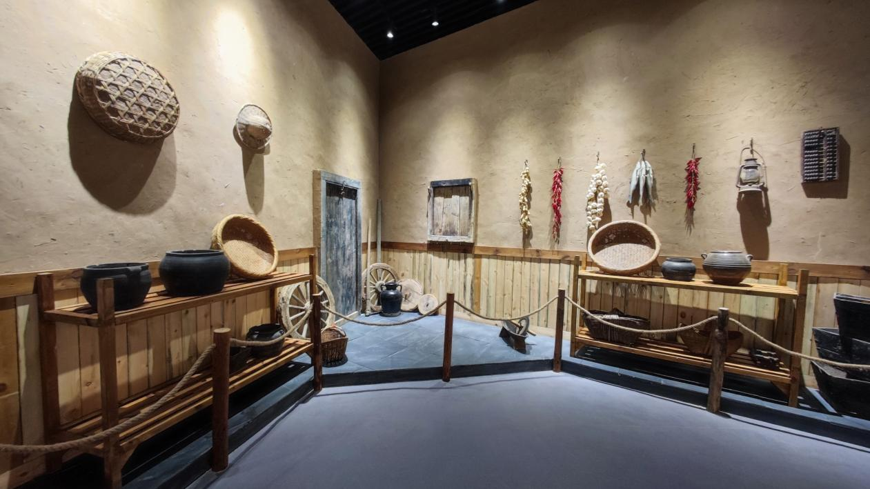 耕读体验展厅对隋代北方农家小院和古代学堂进行场景还原,其中农家小院展示的小麦、桃花、西瓜、草莓等实物均为必赢官网科研成果。除此之外还有瓦罐、石碾、竹篮、水缸等古代农家生活用品,展现了真实的古代农家生活。