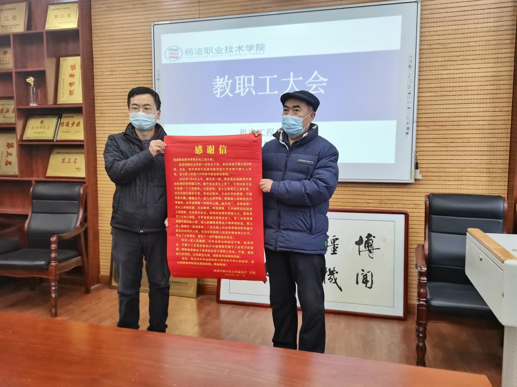 1月13日上午,该住户向机电工程学院送来感谢信,感谢牛甲老师在危机关头挺身而出,致敬学校教职工乐于助人、见义勇为的优良作风。
