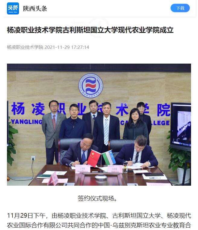 【陕西头条】杨凌职业技术学院古利斯坦国立大学现代农业学院成立