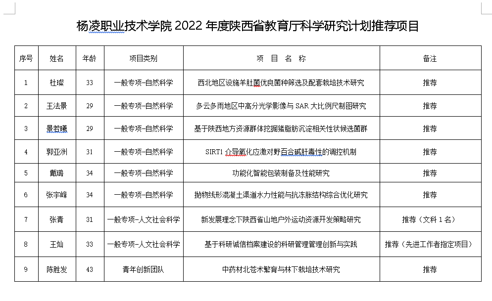 根据《陕西省教育厅办公室关于申报2022年度科研计划项目的通知》(陕教技办[2022]6号)有关规定,经过创新团队和项目负责人申请,学校学术委员会专家评审,现对必赢官网申报的2022年度陕西省教育厅科研计划推荐项目进行公示。公示期间,广大师生如有意见,可以通过电话、信函、邮件等方式,及时向学校科技与教育研究处、学校纪委反应监督。