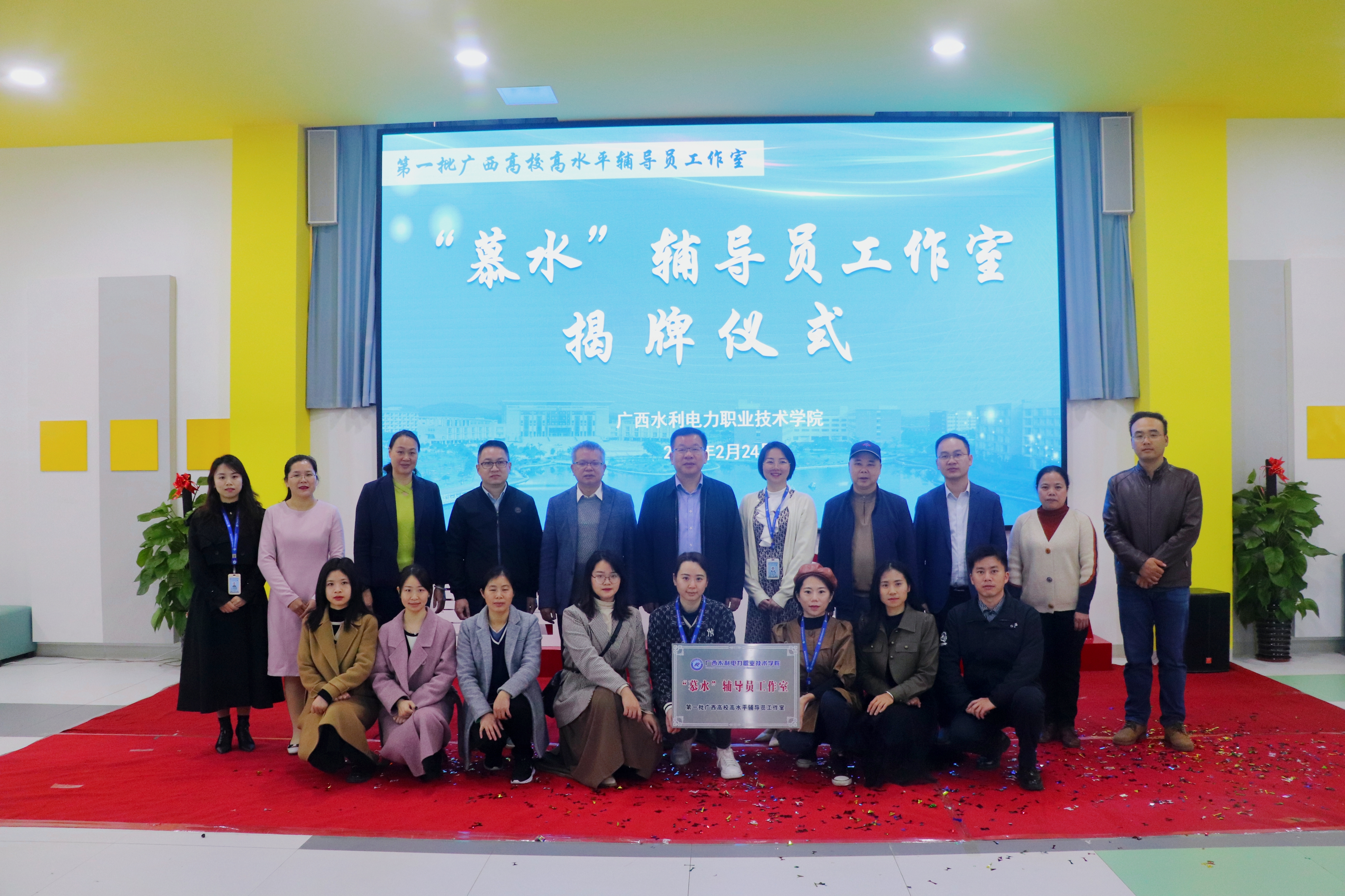 2月24日,学校在里建校区“一站式”学生社区举行了“慕水”辅导员工作室揭牌仪式。学校校长李林、副校长蒋文沛、副校长苏超及相关职能部门负责人、辅导员工作室代表、学生代表参加了本次活动。仪式由水利工程学院党总支书记班兰美主持。