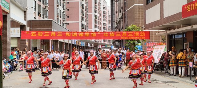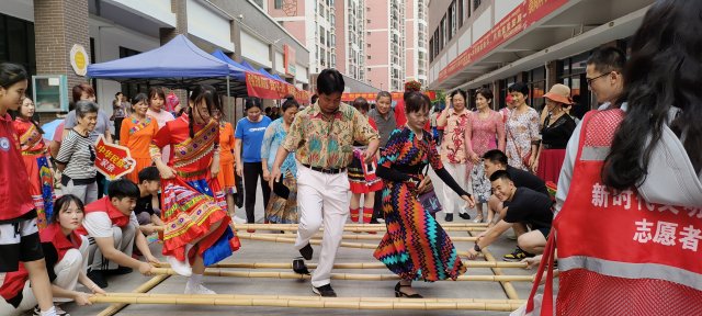 本次活动共设有“山歌好比春江水”和“美丽广西”文艺队舞蹈节目,“再唱山歌给党听”歌唱曲目、“壮乡特色糯米拼盘作品”展示会、“全民竹竿舞”和“民族文化我来说”等活动环节。精彩的民族舞蹈动起来、嘹亮的山歌唱起来,亮丽的民族服饰秀起来,民族文化故事讲起来,动人的壮族竹竿舞跳起来,现场热情高涨,居民们纷纷主动加入到活动中,沉浸式体验独特的壮族民俗风情,让居民们、学生们更深层次地感受壮族传统文化的魅力。
