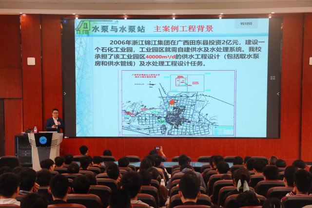讲座中,赵教授通过提问互动,与同学们一同探讨取水泵站设计、并联工况中泵设计选型及运行要点,分享了双泵并联工况折减工程实例及经验。赵教授从专业的角度,深入浅出、通俗易懂讲述了工程实际运行中停泵水锤、气蚀的危害及避免气蚀的措施。最后引导学生分析案例的可能原因,告诉同学们要应用理论指导实践去解决问题,降低泵的运行能耗,呼吁全体同学要树立双碳理念,提高节能意识,实现人与自然和谐发展。