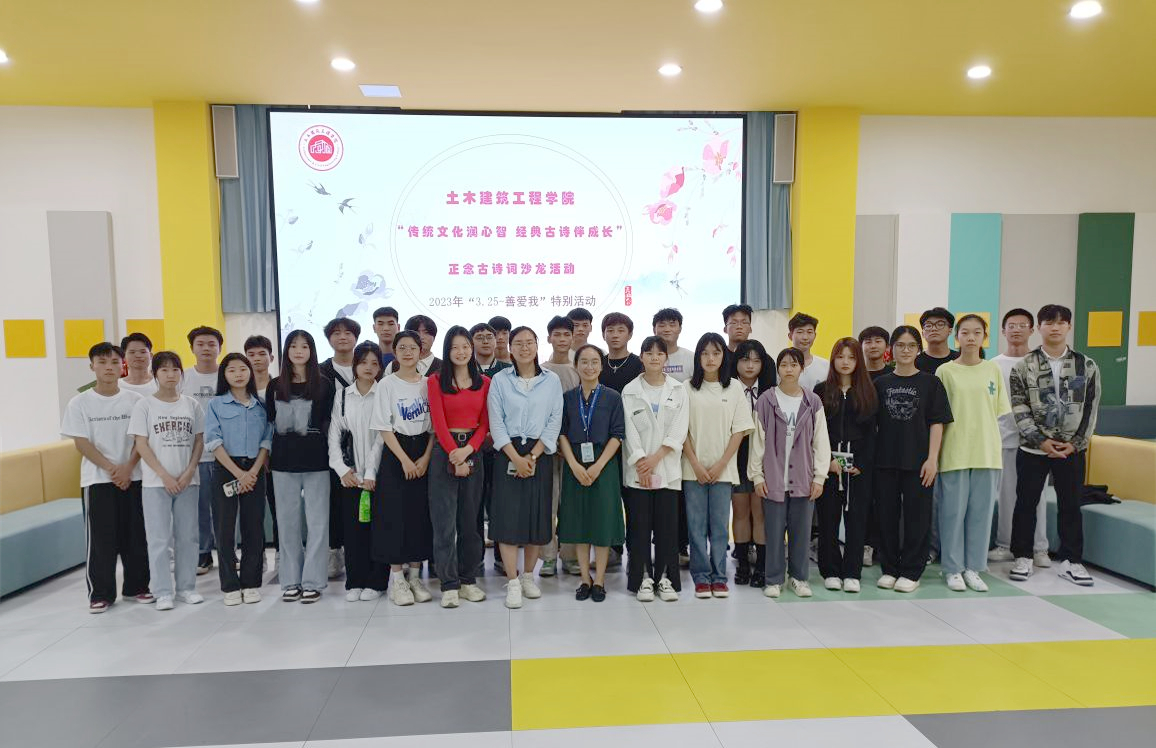 [本网讯]为了提升大学生心理健康水平,进一步增强学生文化自信,丰富校园文化生活。3月24日下午,土木建筑工程学院心理辅导站联合薪火辅导员工作室在里建校区和园“一站式”学生社区传统文化馆组织开展了“3·25-善爱我”《传统文化润心智·经典古诗伴成长》正念古诗词沙龙活动。土木建筑工程学院心理辅导站站长覃荣坚老师、辅导员赵楠老师主持,30名同学参加了此次活动。