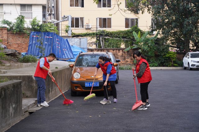 党员老师们正在清洁社区