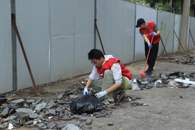 志愿者在清洁社区死角