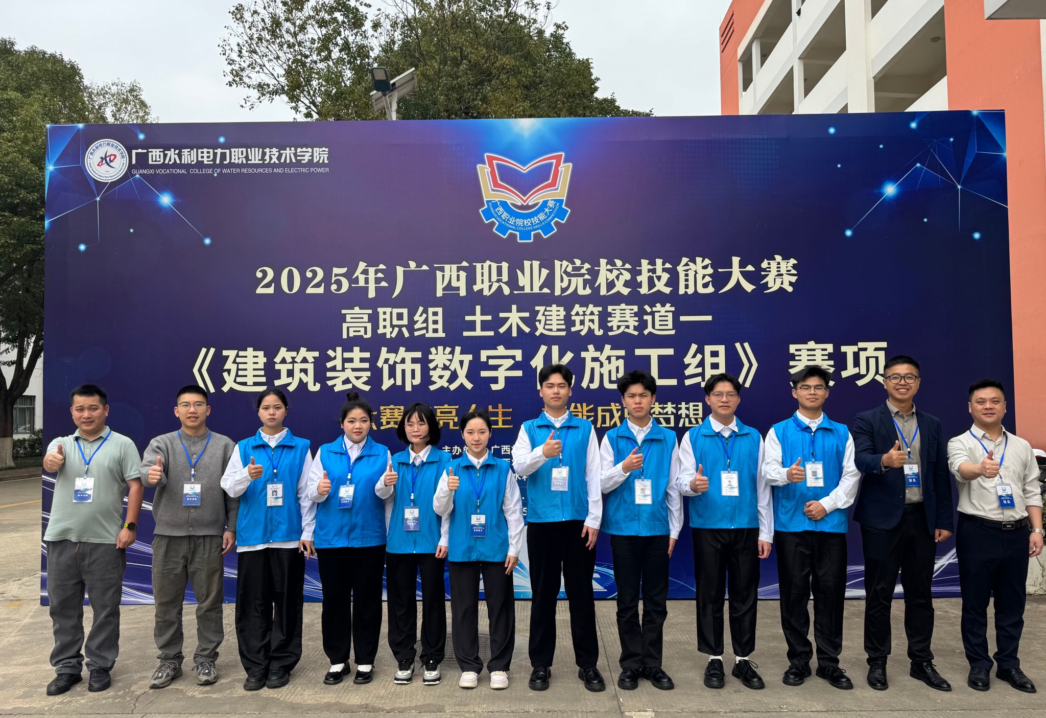 本次大赛由自治区教育厅、水利厅联合主办,吸引了全区14所高校的25支参赛队伍踊跃参与。经过激烈角逐,大赛最终评选出3项金奖、4项银奖和7项铜奖。与往年相比,今年的《建筑装饰数字化施工组》赛项迎来升级,全面对标2024年世界职业院校技能大赛标准,考核维度更加全面,紧密围绕建筑装饰行业生产、管理、服务一线岗位的实际需求和实践标准,以技能创新为核心导向,充分激发了参赛队伍的创新潜能。