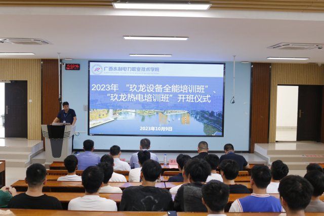 [本网讯]10月9日下午,2023年“玖龙设备全能培训班”“玖龙热电培训班”开班仪式在学校里建校区教学楼二楼学术报告厅举行。玖龙纸业(北海)有限公司人力资源主管、学校继续教育学院及相关二级学院主要负责人、教师代表和玖龙纸业订单班全体同学参加了本次开班仪式。开班仪式由继续教育学院副院长梁依宁主持。