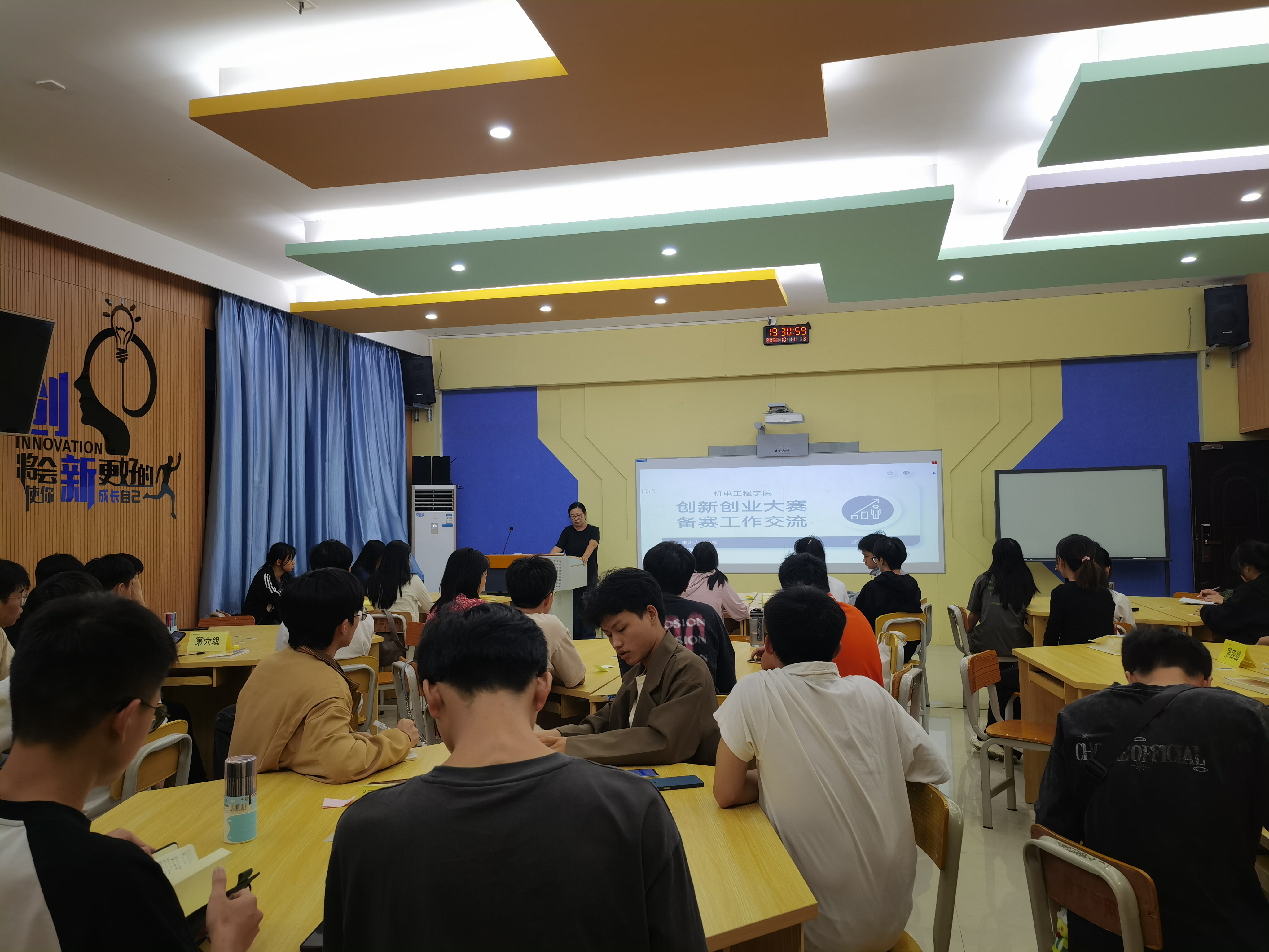 [本网讯]为营造学院创新创业良好氛围,提高学生对创新创业大赛的认识,提高广大师生参与创新创业大赛的积极性,10月11日,机电工程学院创新创业骨干教师、“匠心志远”就业创业工作室成员郭畅老师在里建教学楼116教室召开机电工程学院2023年创新创业大赛备赛交流会。参赛指导老师、学生代表等50人参会。
