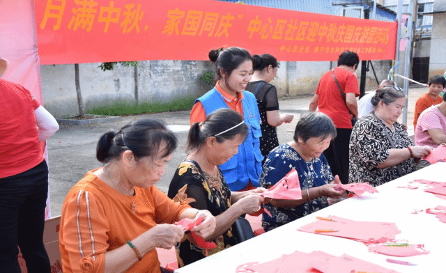 本次活动以“过好我们的节日——中秋节、国庆节”为主线,设置了趣味盎然的活动项目,有“纸艺迎国庆,我心献祖国”剪纸活动、“嫦娥奔月”活动、猜灯谜、兔子套圈圈、玉兔投壶等,现场人声鼎沸,居民络绎不绝。活动项目虽然简单,但居民朋友齐聚一堂,社区老少齐上阵,呐喊声、欢笑声一浪高过一浪,精彩场面随处可见,整场活动在欢乐友好的气氛中进行。