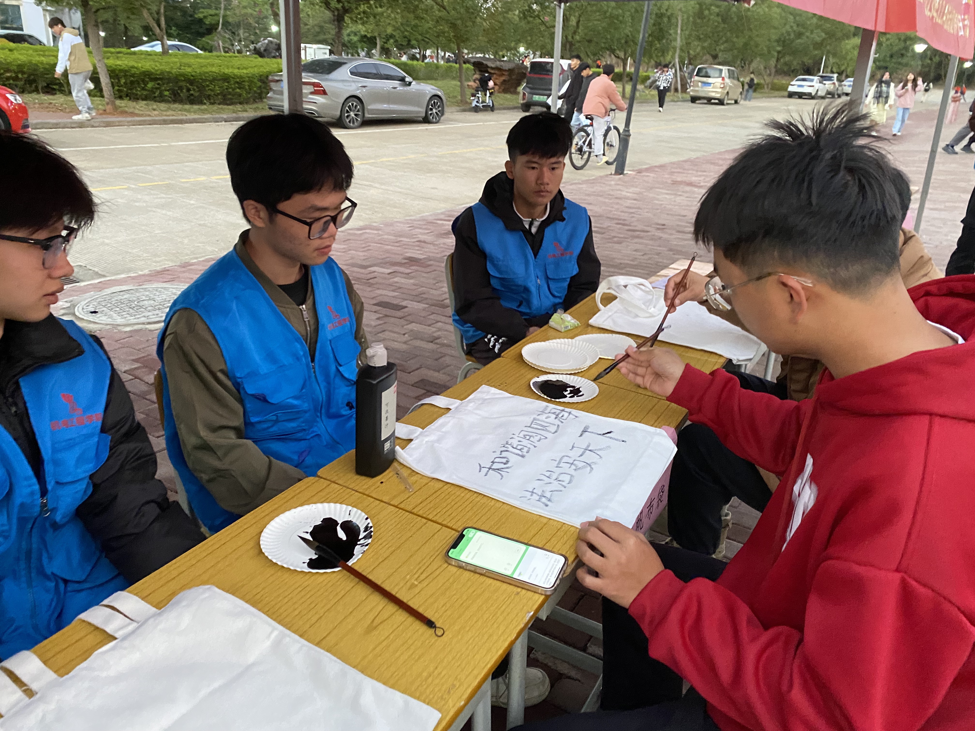 本次活动以“传播法律知识,弘扬法治精神”为主题,线上采用易班APP平台进行法治知识答题活动,活动参与人数达1781人。线下采用法治宣传主题手抄报活动和系列普及法制知识的活动,如投球识法、速记识法等,活动地点设定在里建校区惜谷轩前空地,线下活动参与人数251人。