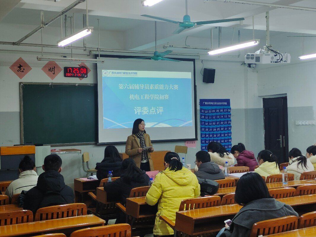 本次比赛对标省赛赛制,将辅导员在理论学习、思政教育和日常管理工作中的所思所学融入比赛,为全体辅导员提供了一个互动交流和观摩学习的良好平台,有助于提升辅导员解决实际问题的能力,真正实现了以赛促练、以赛促训、以赛促学、以赛促建的目的,进一步加强了辅导员队伍建设,助推学校思想政治教育工作高质量发展。机电工程学院将持续提高辅导员队伍的综合育人能力,全面推动辅导员队伍职业化、专业化发展,努力打造一支政治素质过硬、业务能力精湛、育人水平高超的辅导员队伍,助推学校内涵式高质量发展。(罗贤泰/文 黄家万/图)