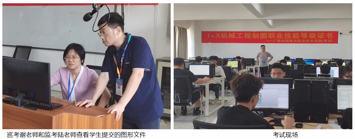 [本网讯]为进一步推进“岗课赛证”融通、提升学生职业技术技能,提高人才培养质量,2023年6月3日下午,全国“1+X”机械工程制图(中级)职业技能等级考试在学校里建校区举行。本次考试由机电工程学院负责举办,机电工程学院季锐副院长担任本次考试主考,谢佳宾老师担任巡考员。