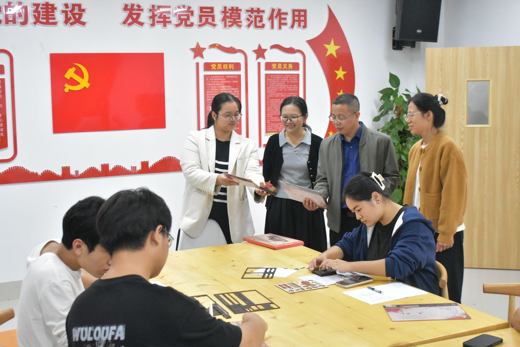 老师们在指导学生作品