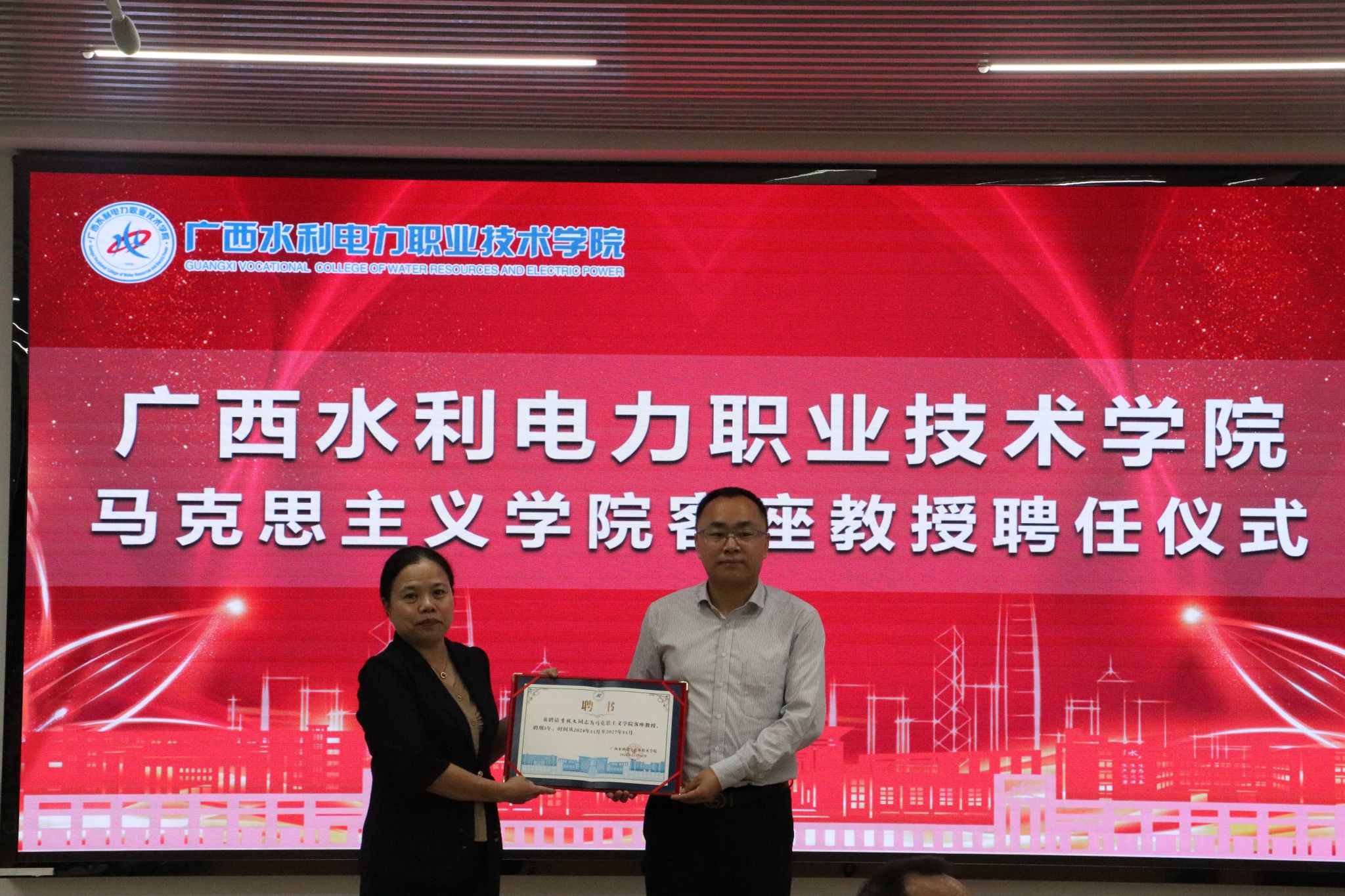李春萌为李技文博士颁发聘书