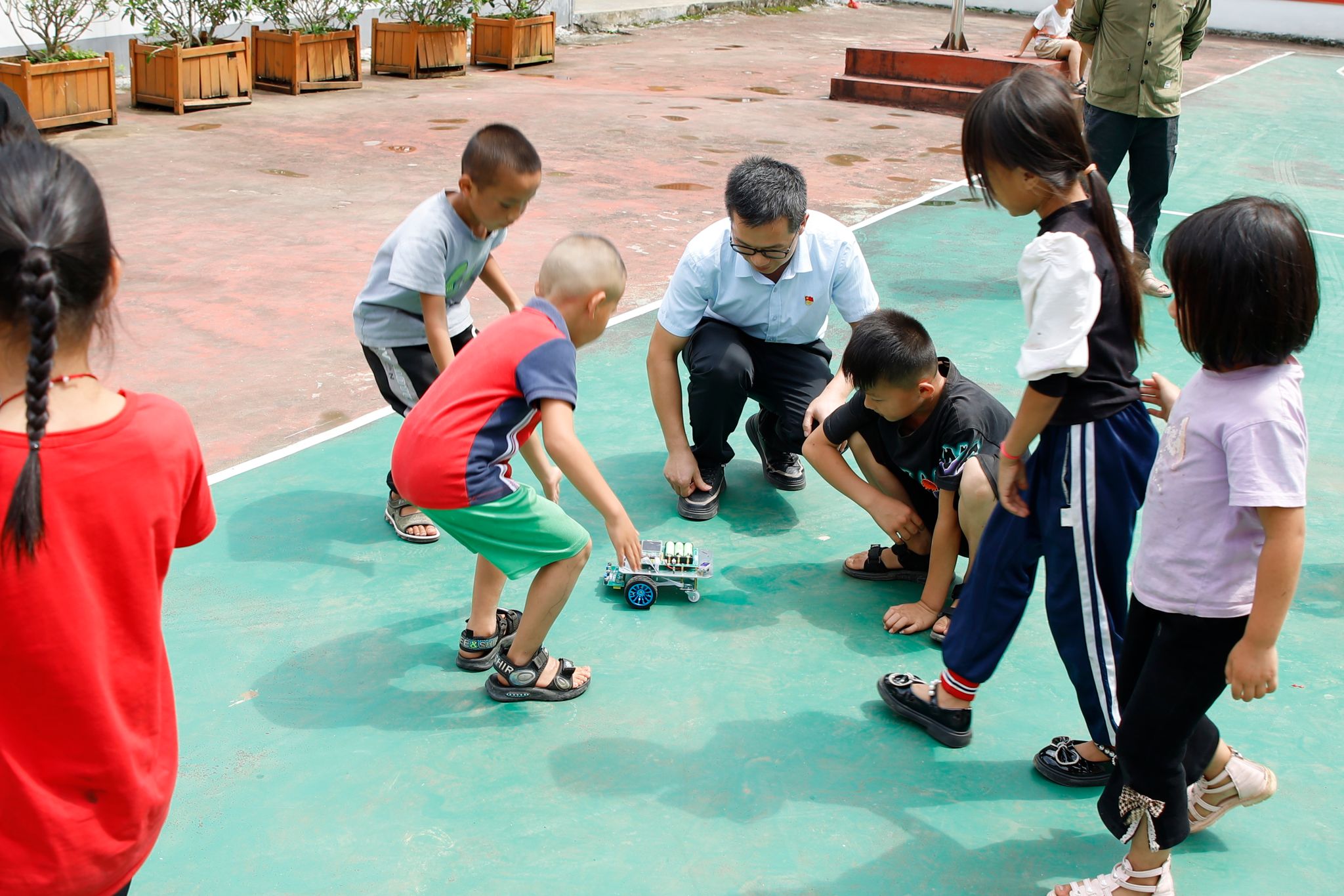 韦昌启老师指导孩子们使用小车