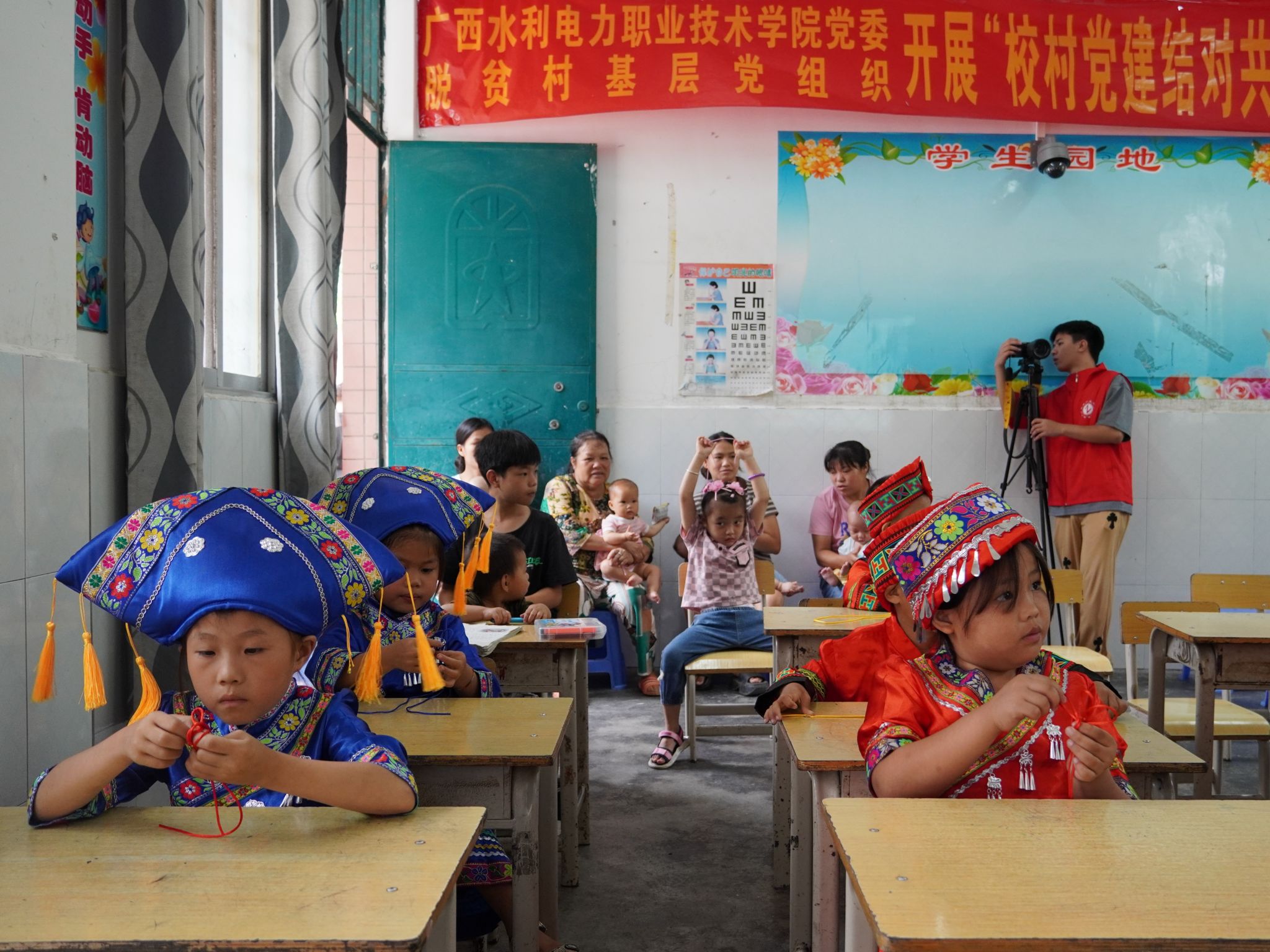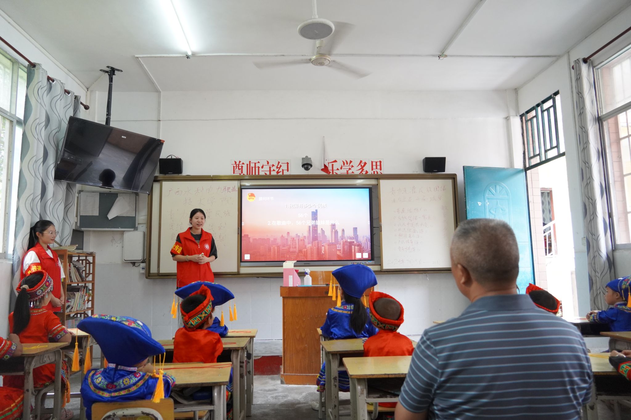 【本网讯】2024年7月16日,自动化工程学院团委及“三匠”辅导员工作室组织的“星火传递”民族团结实践团迎来了第二天的活动。团队在岜林村小学开展了一场别开生面的支教活动,以推广普通话为课程主题,用实际行动促进民族团结与文化交流。