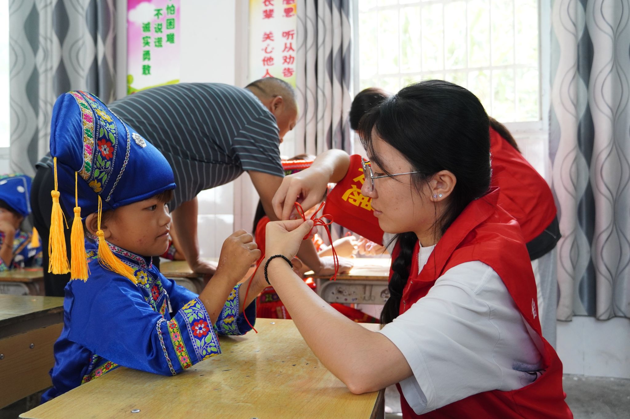 教小朋友们制作中国结